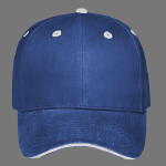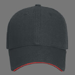 100% Cotton Structured Firm Front Panel Low-Fitting 6 panel cap Seamed Front Panel with Full Buckram 6 Sewn Eyelets Sandwich Visor 6 Rows Stitching on Visor Matching Fabric Undervisor Matching Color Sweatband Adjustable Hook and Loop Closure Size:OSFM -Adult (58cm/22.8")